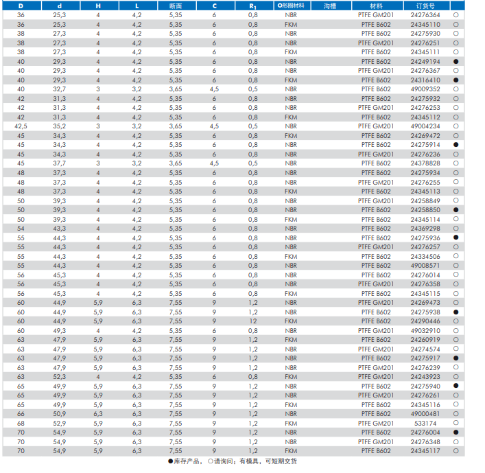 活塞密封專用密封件選型