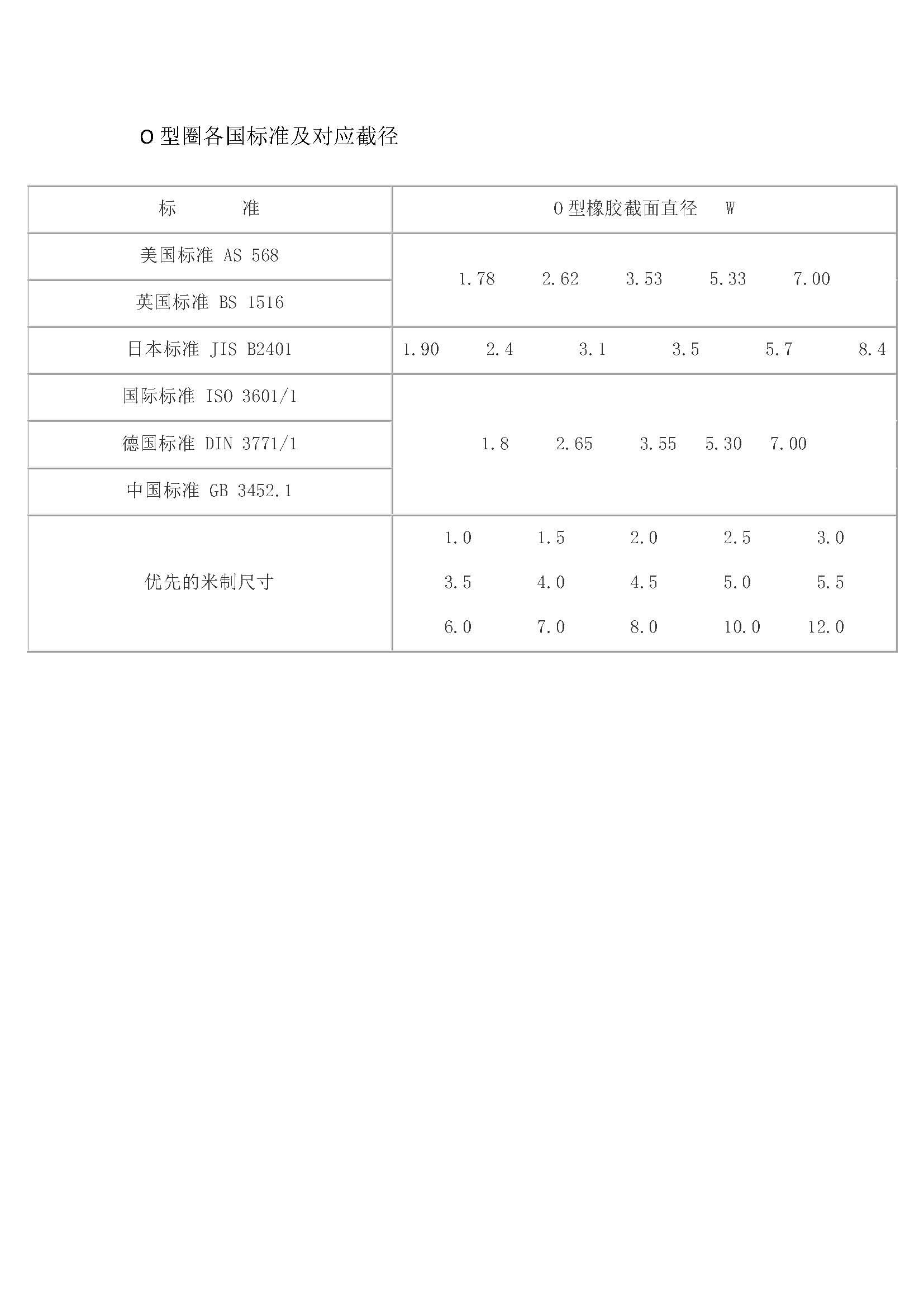 O型圈各國標準及對應截徑